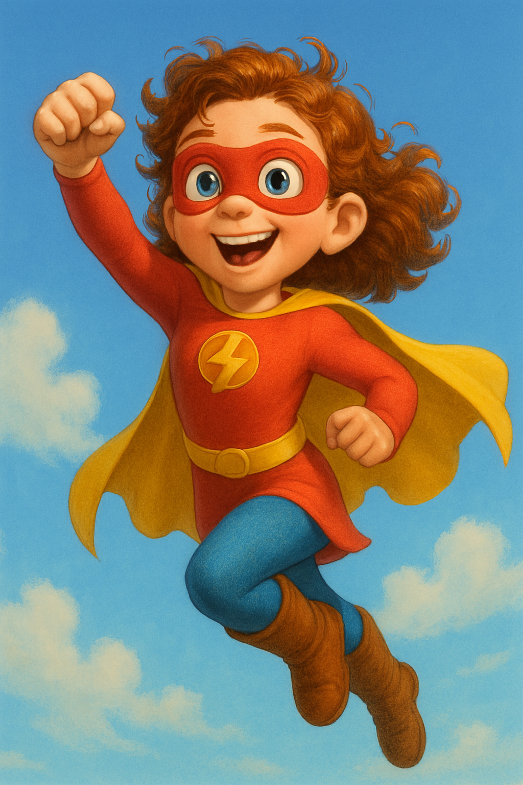 “모험심 넘치는 픽사풍 소녀 히어로, 역동적인 포즈와 밝은 색상”