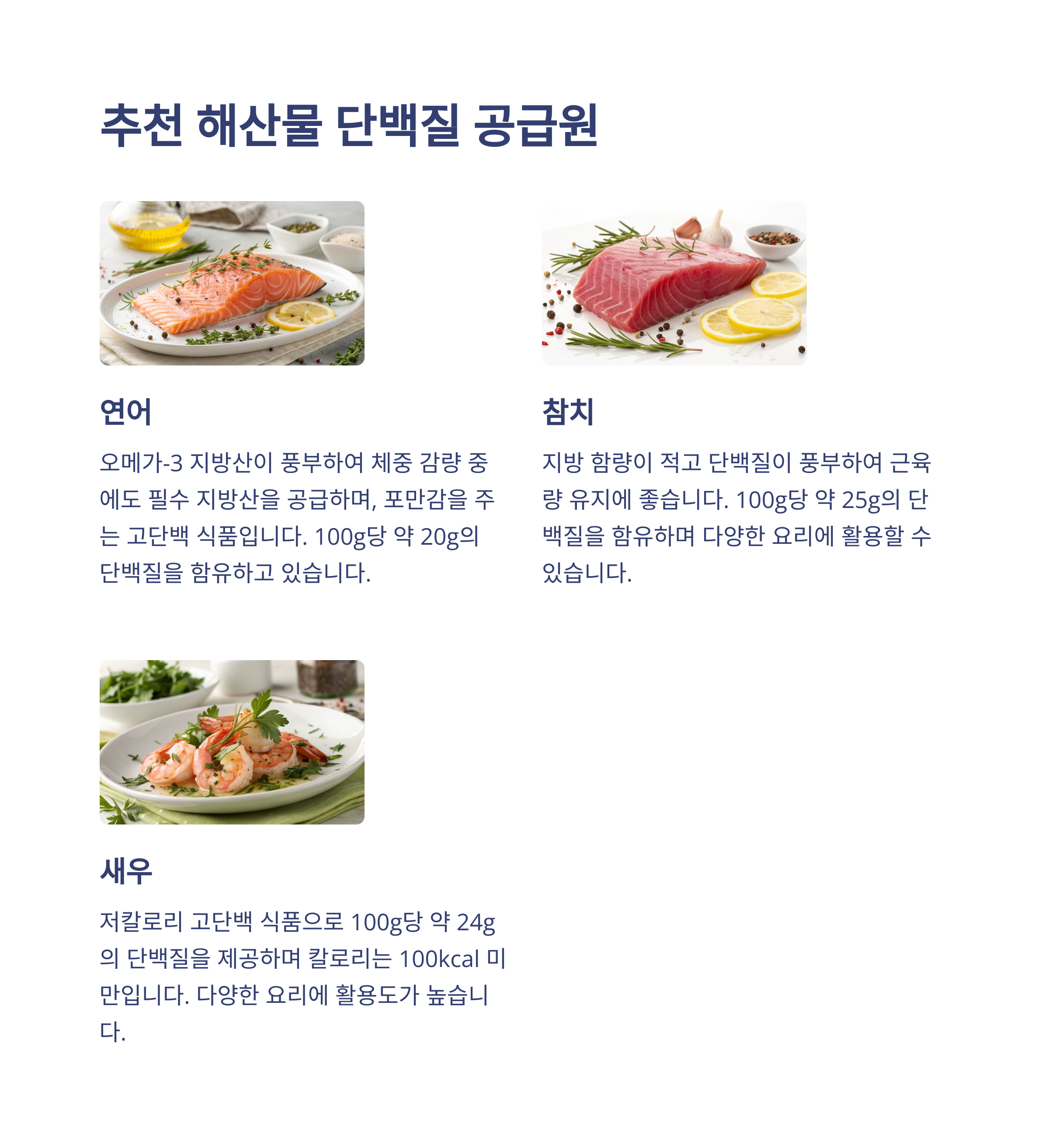 | 해산물 단백질 | 체중 감량 | 건강한 조리법 |