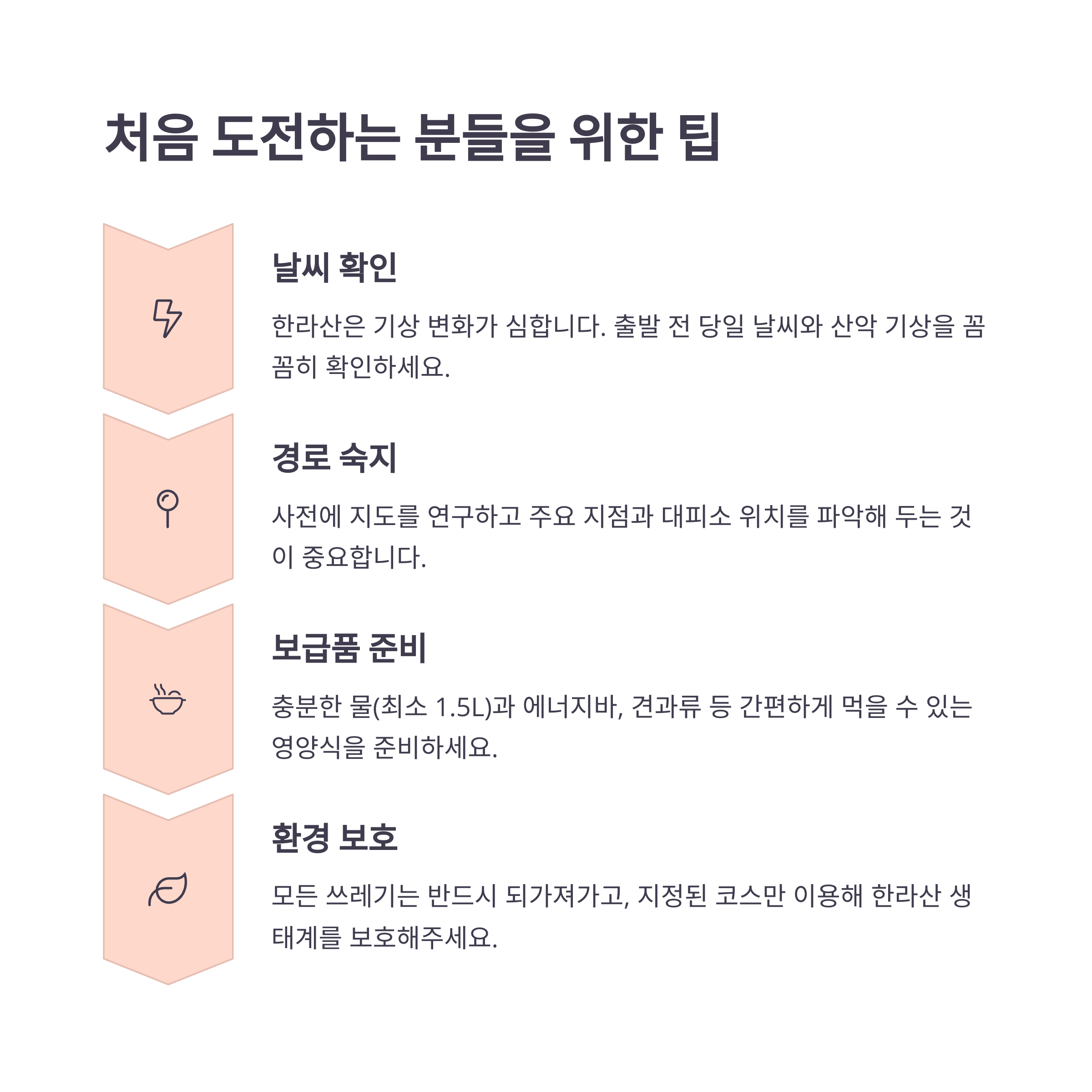 초보자라면 먼저 관음사 코스만 짧게 체험한 후 점진적으로 도전 범위를 넓히는 것이 좋아요.