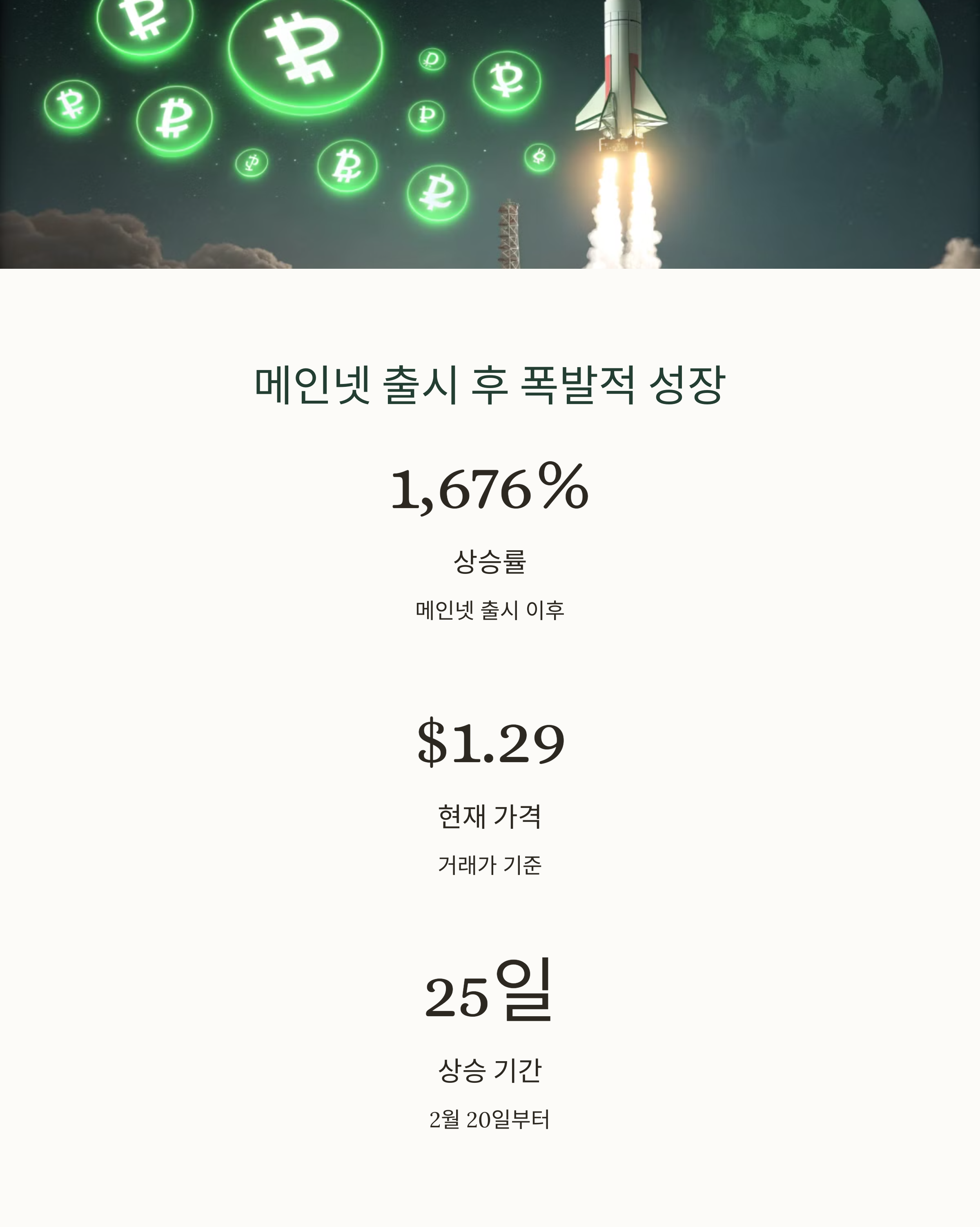 | 메인넷 출시 | 2월 20일 출시 이후 폭발적 상승세 기록 |