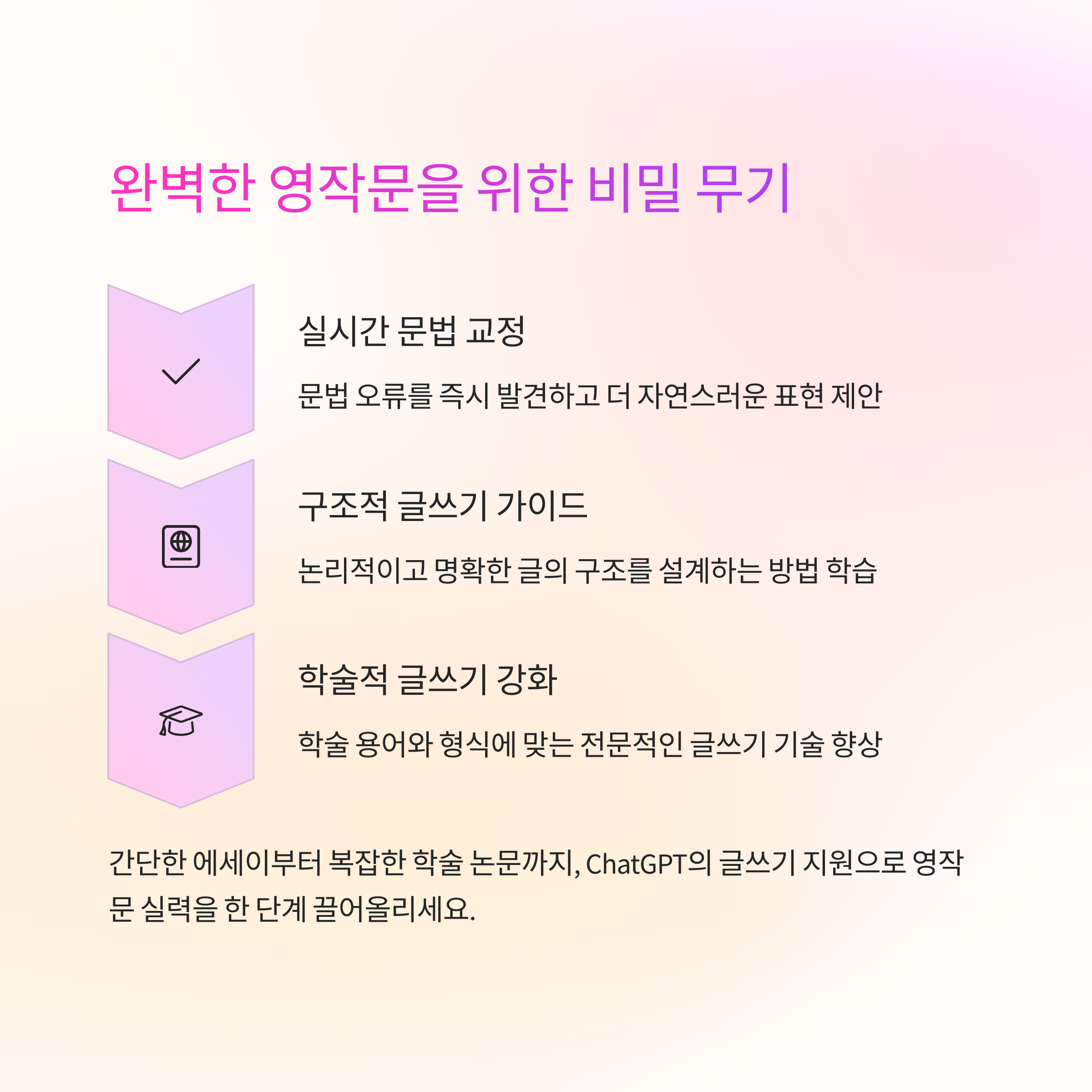 응용 가능성이 높은 도구이므로 시험 대비뿐만 아니라 과제 작성, 학습 계획 세우기 등 다각도로 접근 가능합니다.
