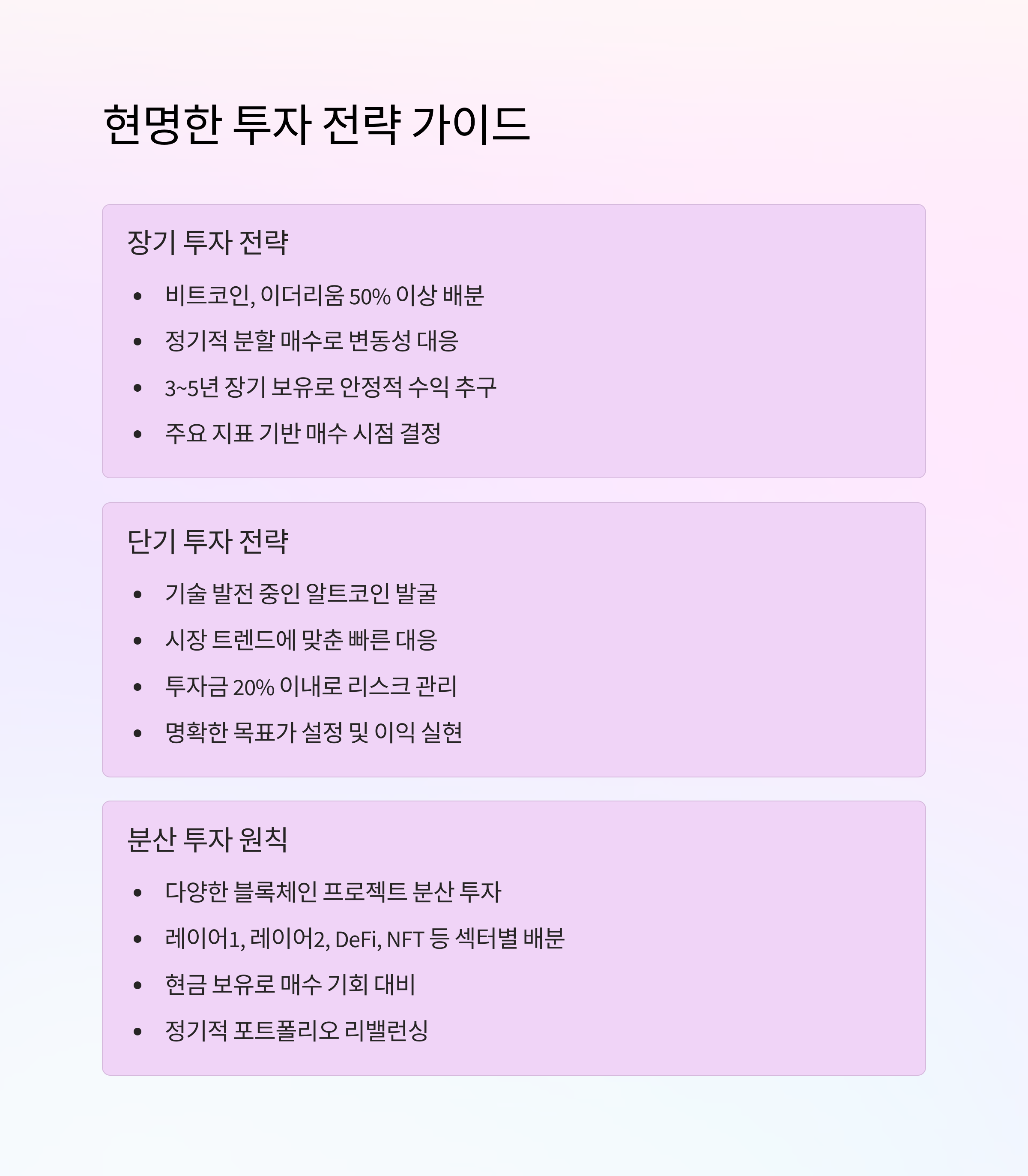 투자 전략 측면에서, 비트코인과 같은 주요 코인에 대한 장기 투자는 여전히 안정적인 수익 창출 수단으로 평가받고 있습니다. 동시에, 솔라나와 같은 알트코인에 대한 선별적인 접근은 높은 수익률을 기대할 수 있는 기회를 제공합니다. 무엇보다 중요한 점은 시장의 기술적 분석과 함께 글로벌 경제 흐름, 규제 변화 등을 복합적으로 고려하는 통합적 시각을 갖추는 것입니다. 감정이 아닌 데이터 기반의 전략적인 투자 판단이 필요합니다.