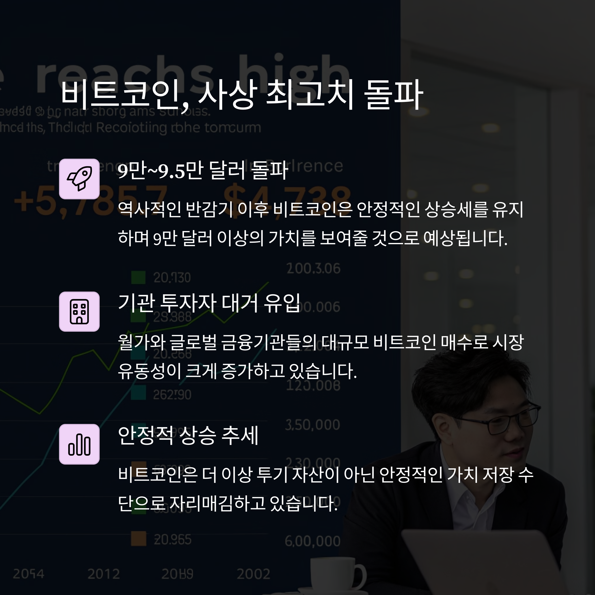 | 시장 회복 흐름 | 2025년 4월, 기관투자 유입과 기술 발전으로 회복세입니다. |