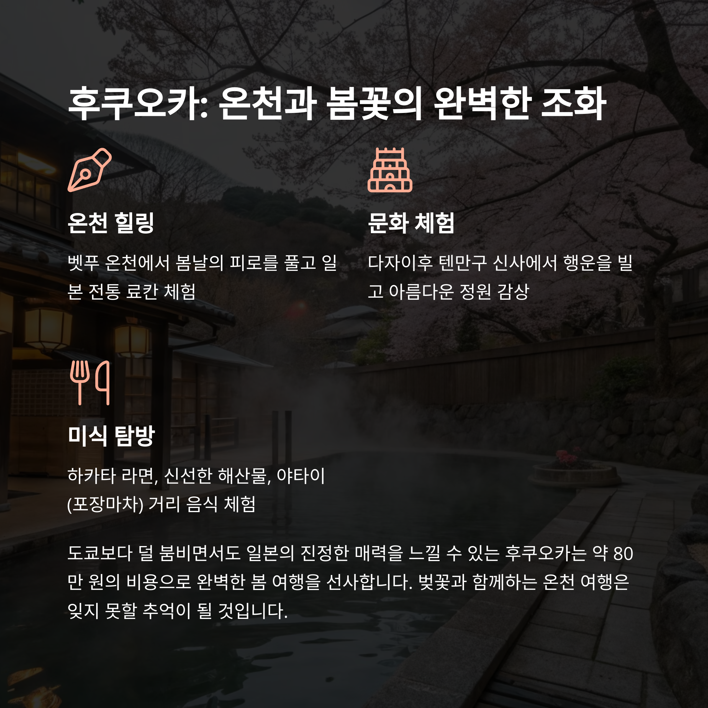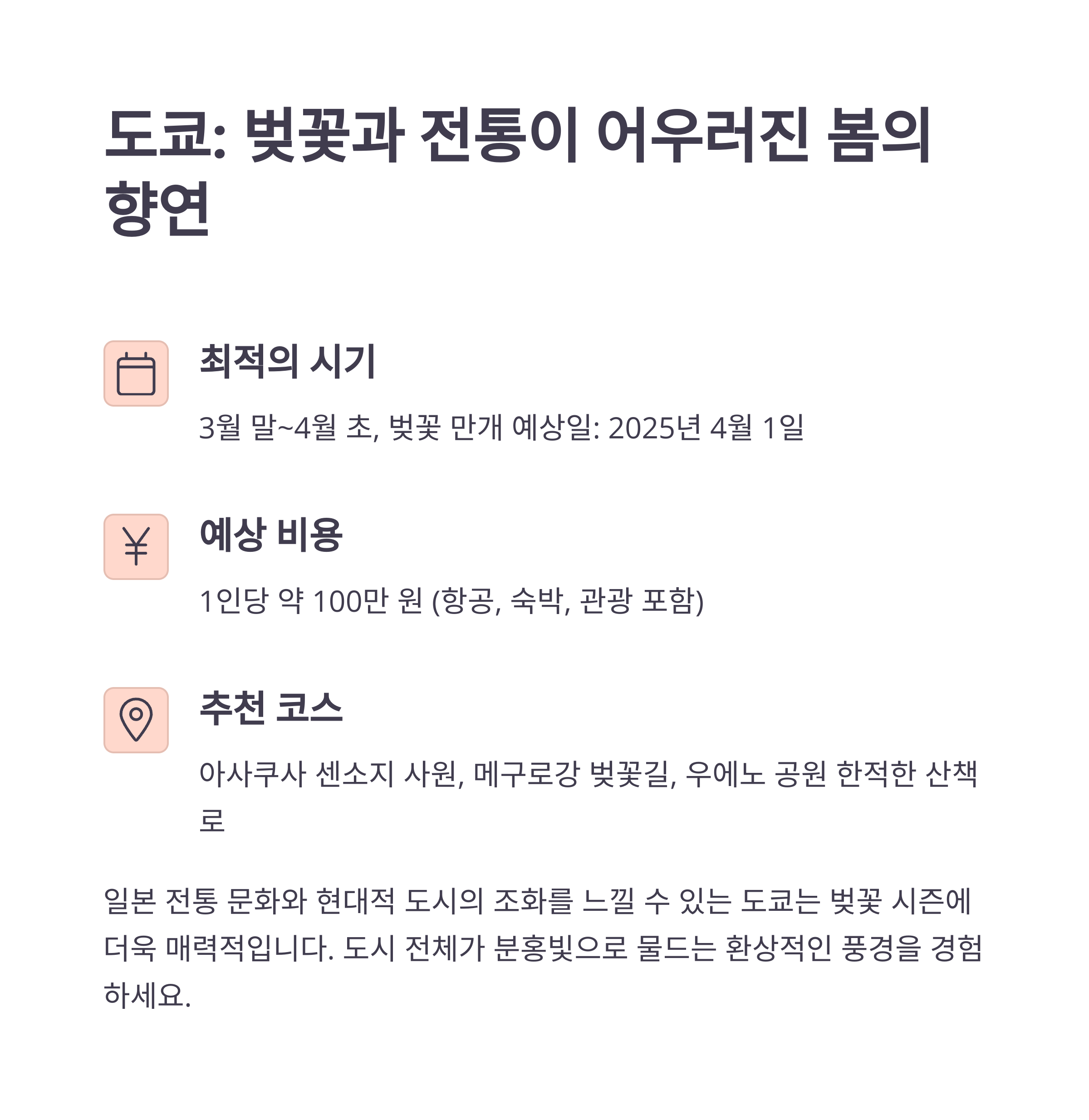 도쿄와 후쿠오카는 벚꽃 시즌 여행지로 최적입니다.