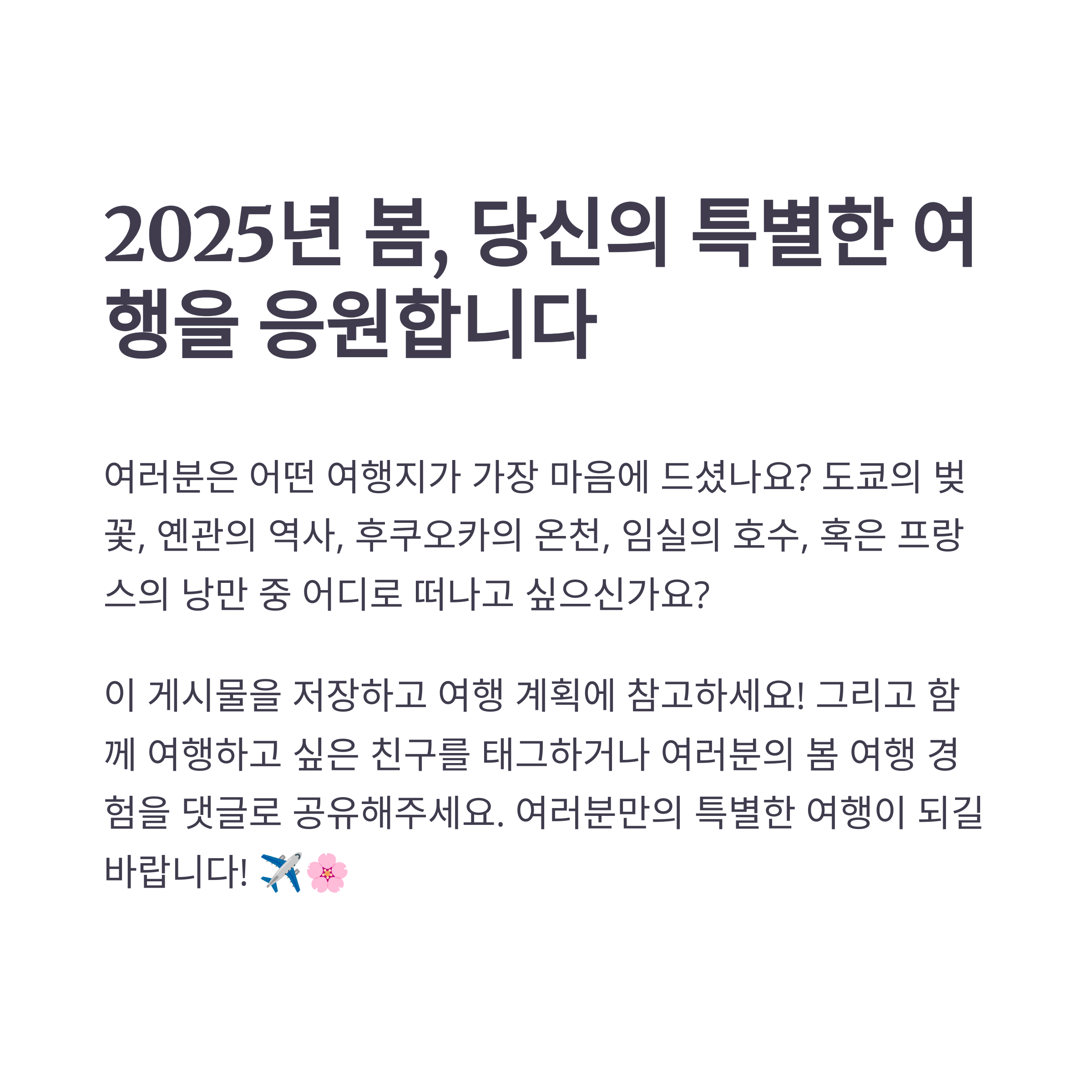 이제, 2025년 4월, 어디로 떠날지 계획하여 특별한 봄을 만들어보세요!