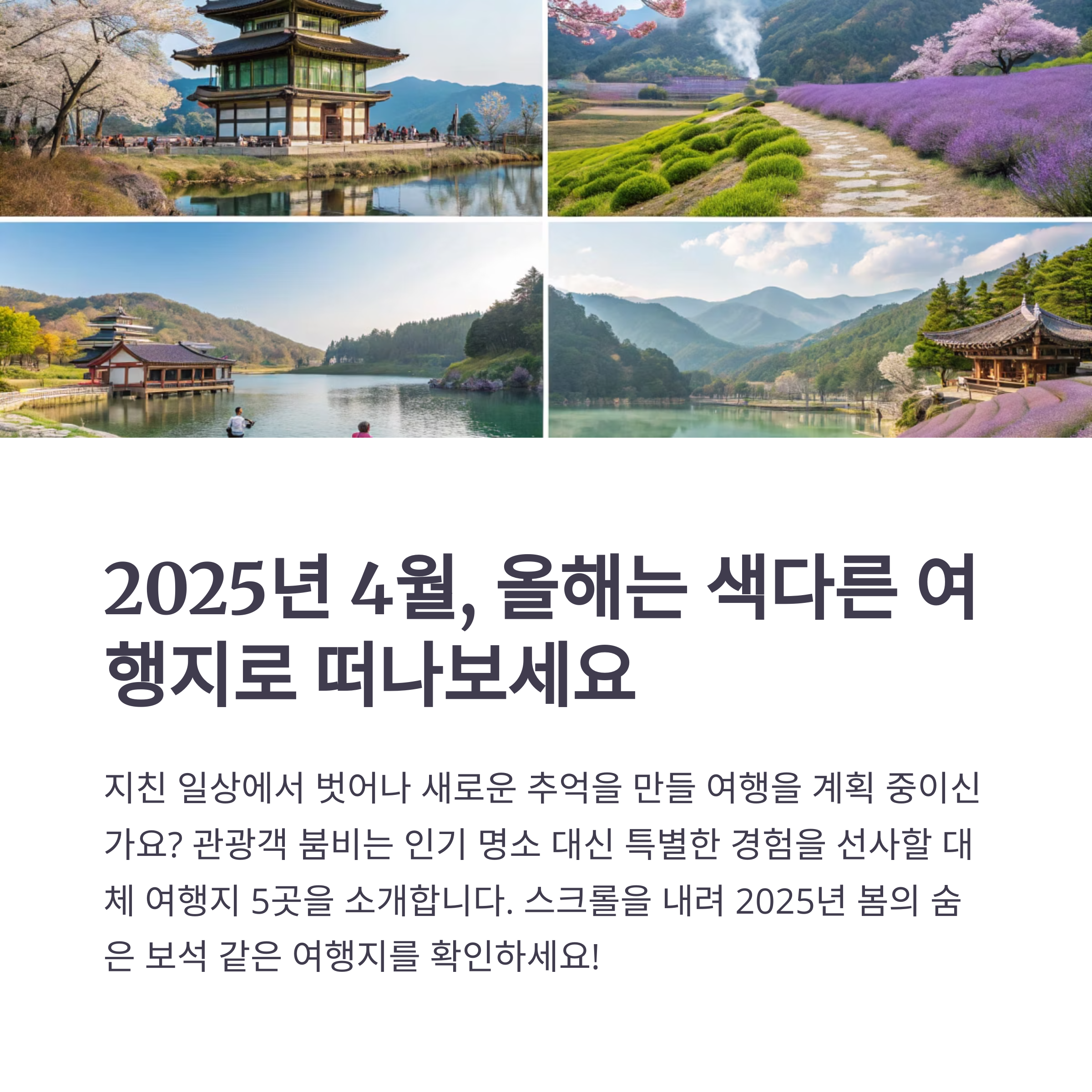 오늘은 2025년 4월의 봄 여행 추천 목적지를 소개하려고 해요.