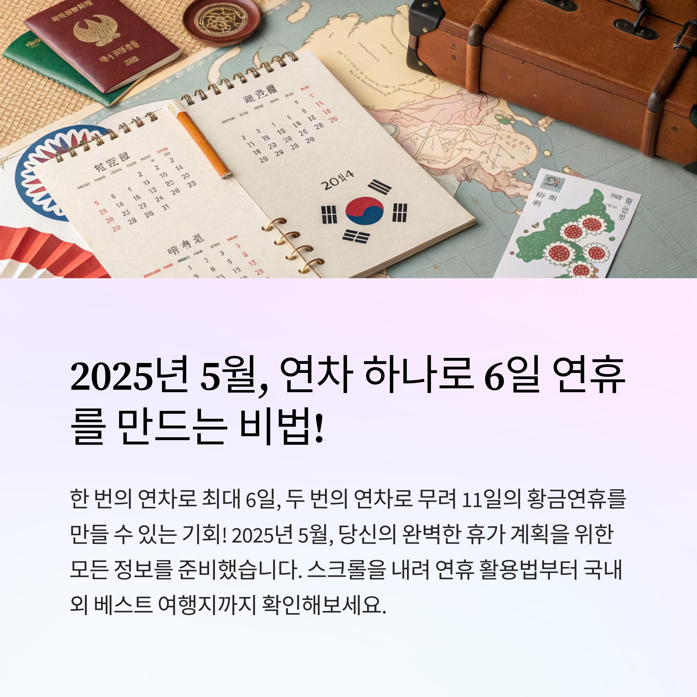 오늘은 2025년 5월 황금연휴를 주제로 연차 활용법, 여행지 추천 등 유용한 정보를 준비했어요.