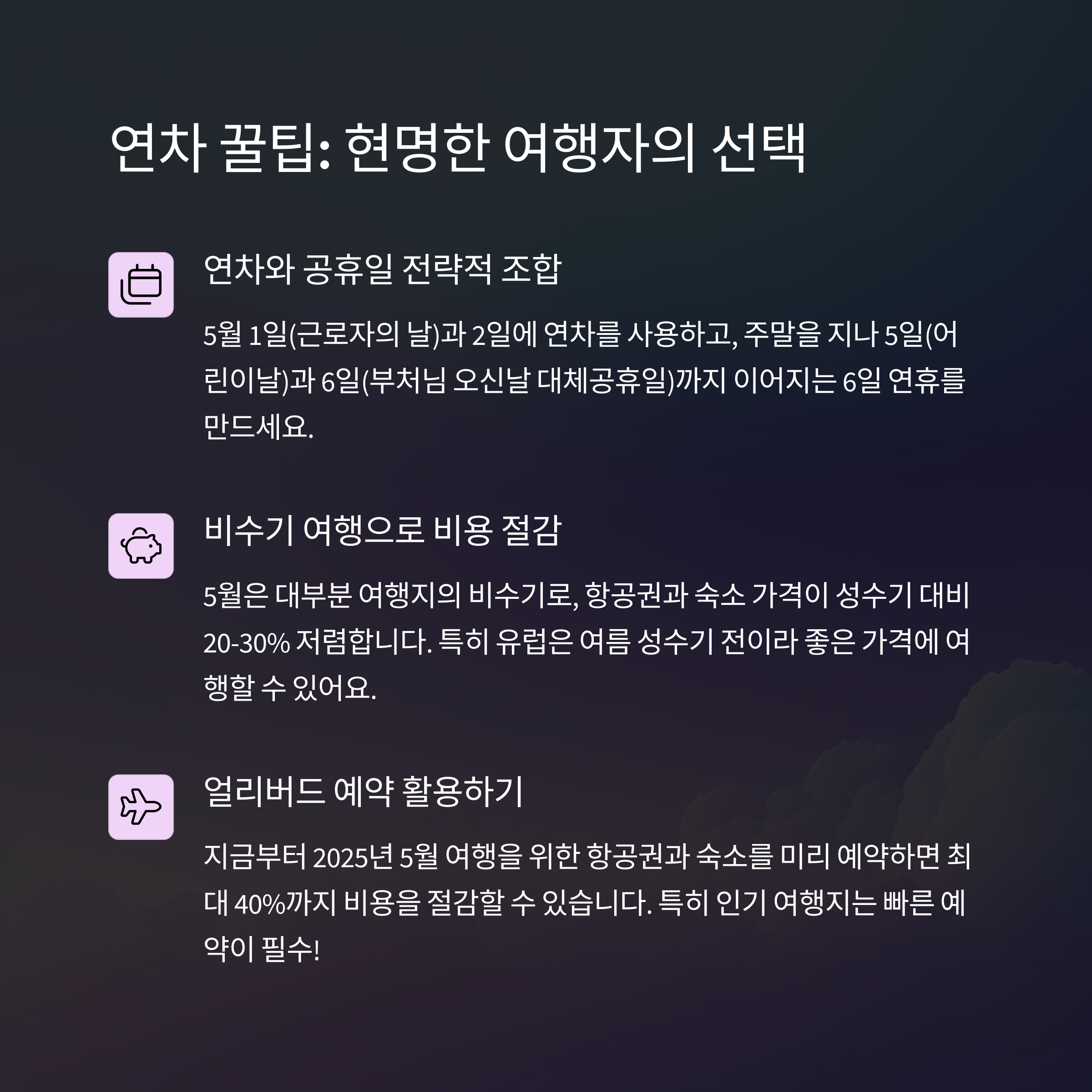 2025년 5월 황금연휴 완전 정복! 연차 활용법부터 여행 추천까지