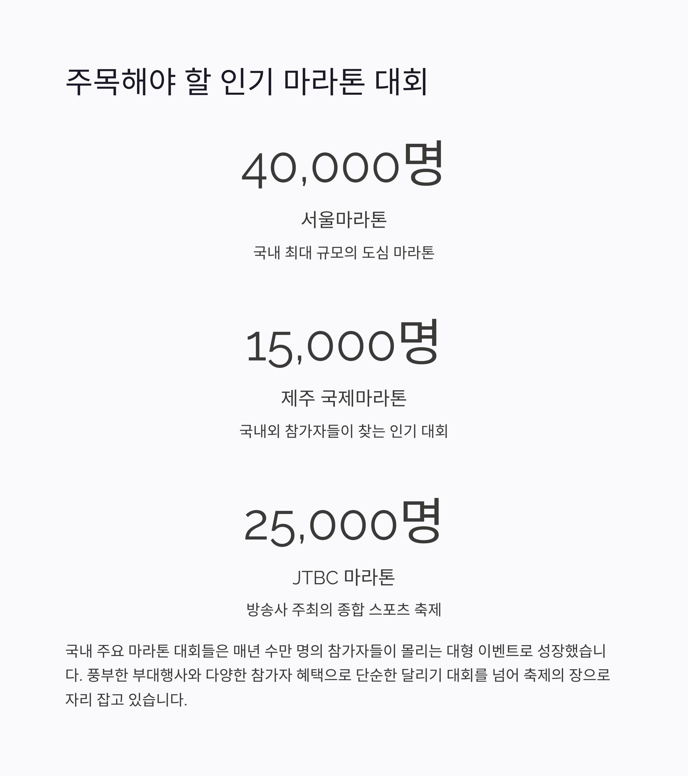 서울, 제주부터 해외 유명 마라톤까지의 핵심 정보를 안내해 드리겠습니다.