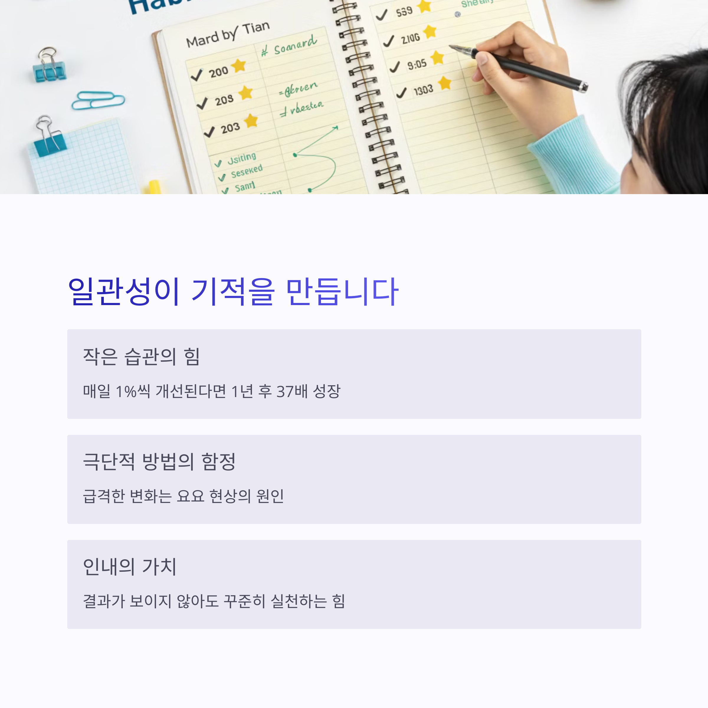 | 구체적인 목표 설정 | "3개월 동안 10kg 감량"처럼 명확한 목표를 세워요. |