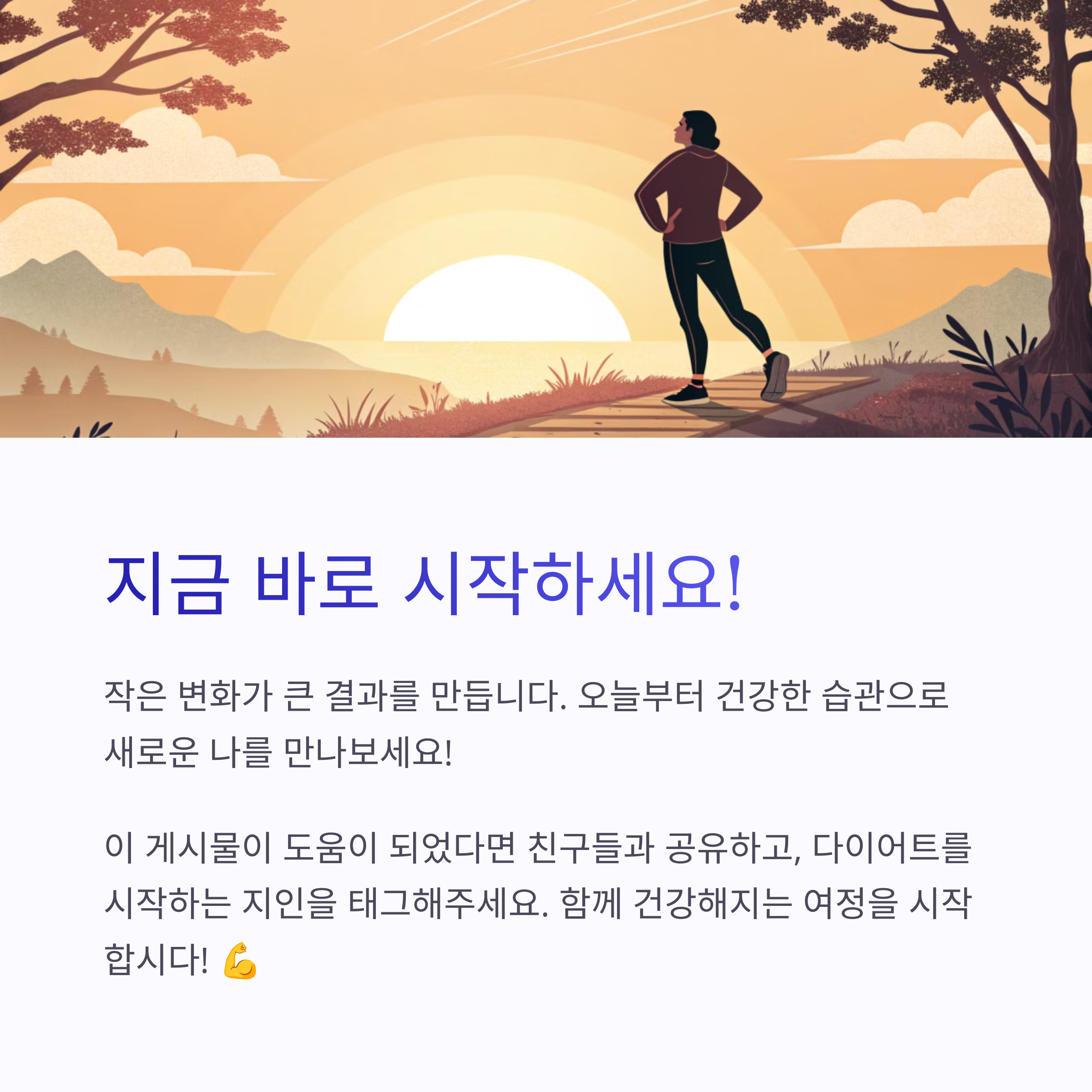여러분은 어떤 다이어트 습관을 실천하고 계신가요? 댓글로 여러분의 노하우를 함께 공유해주세요. 서로 응원하며 더 나은 건강을 만들어가요!
