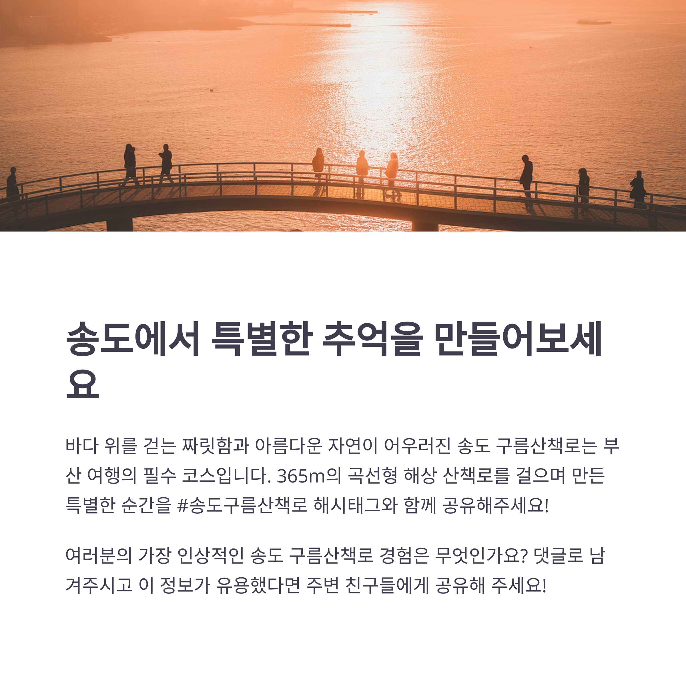 5월의 부산은 송도 구름산책로 방문에 완벽한 계절적 조건을 제공합니다.