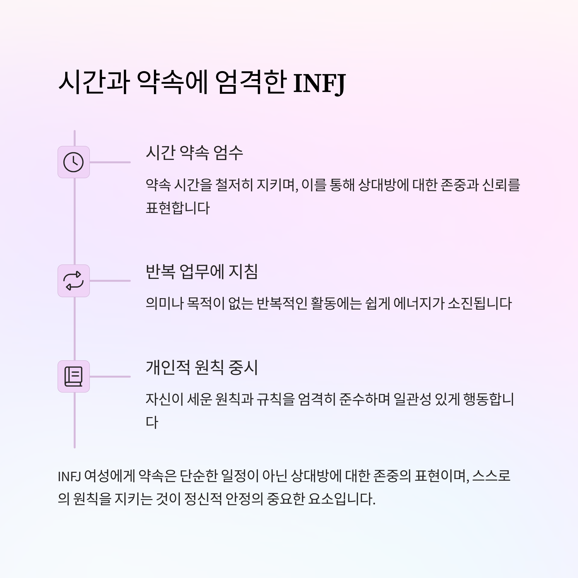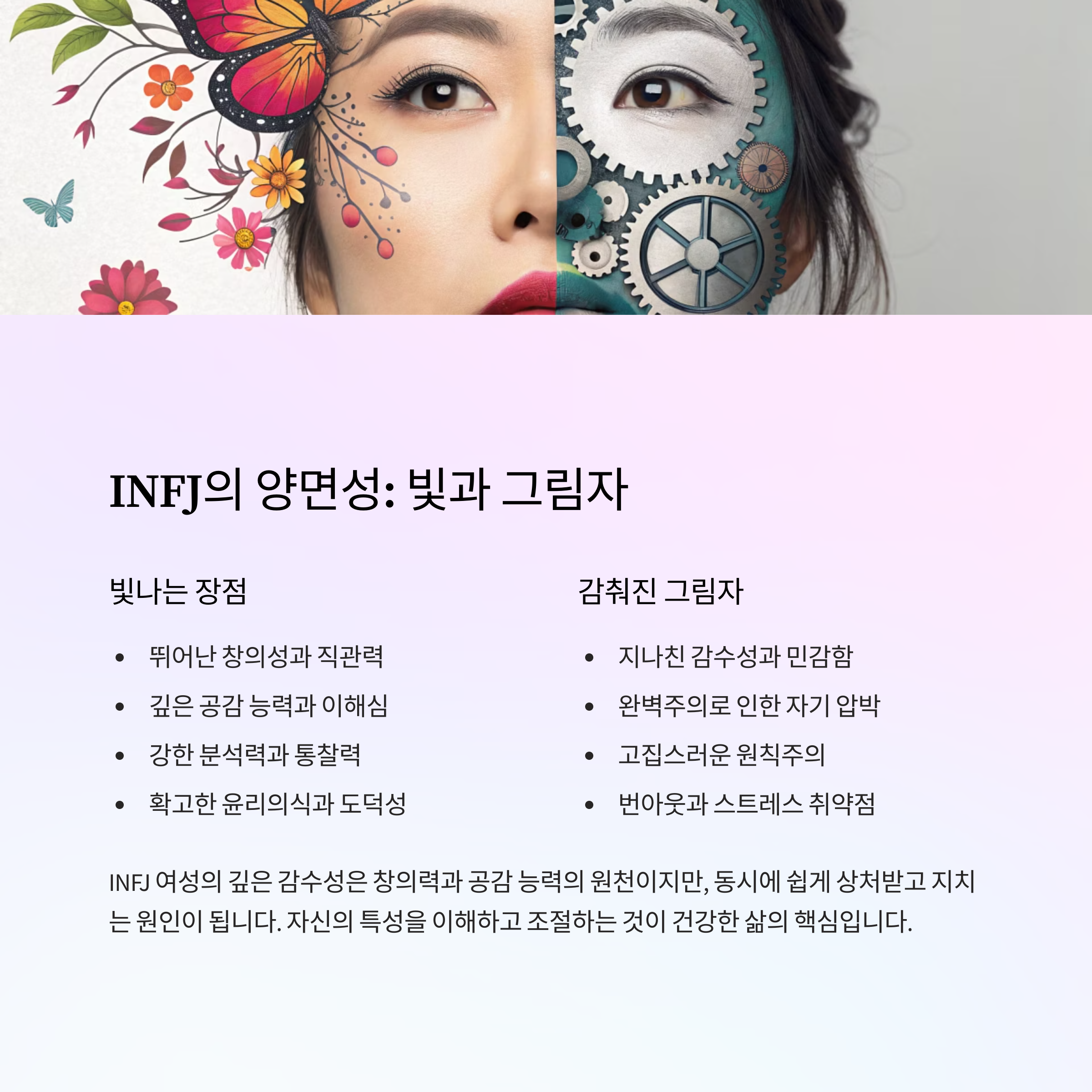 이처럼 자기 성찰과 타인에 대한 깊은 애정은 INFJ 여성을 특별하게 만드는 주요 요소입니다.