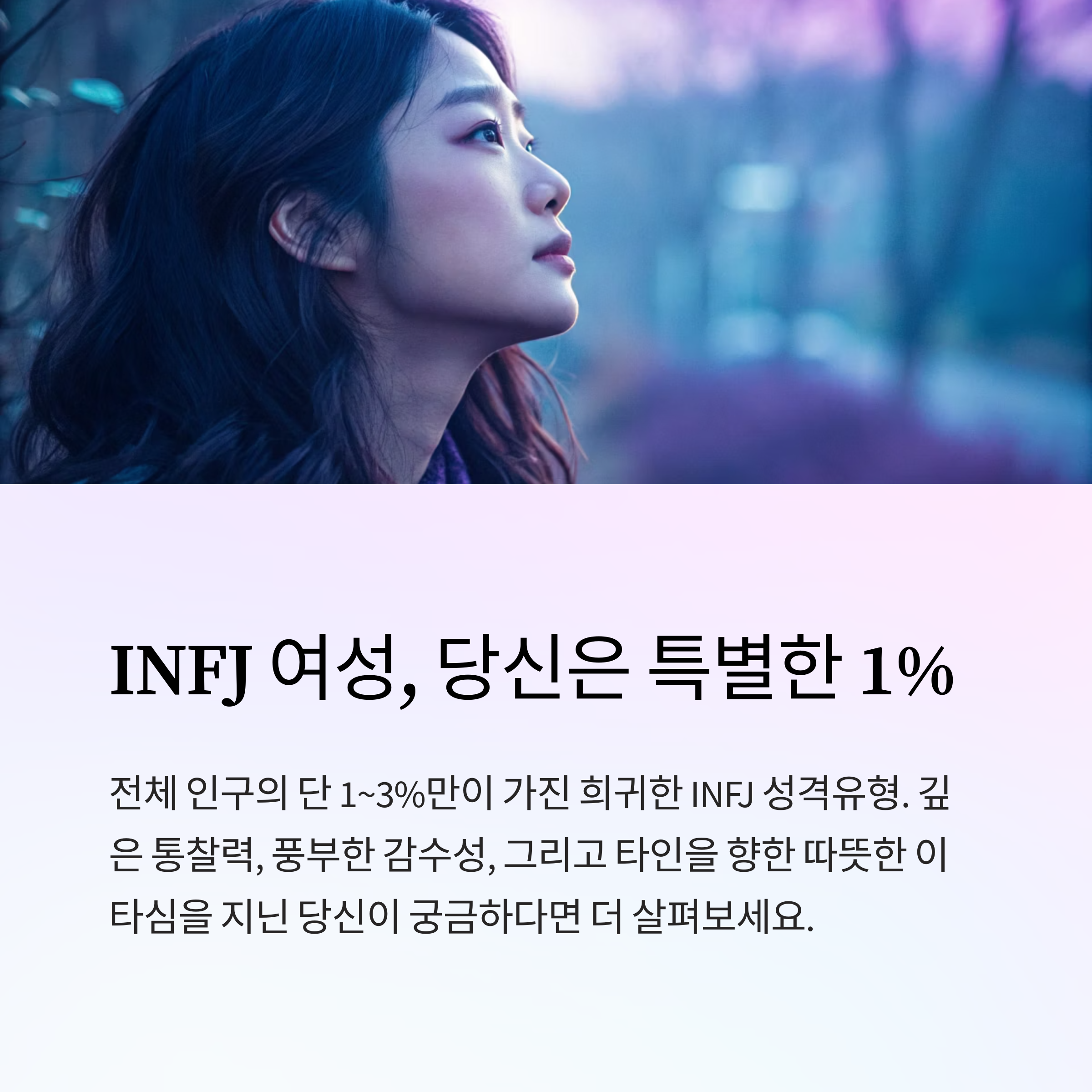 오늘은 세계에서 가장 희귀하다고 알려진 성격 유형, 특히 INFJ 여성의 특징과 연애에 대해 알아볼 건데요.